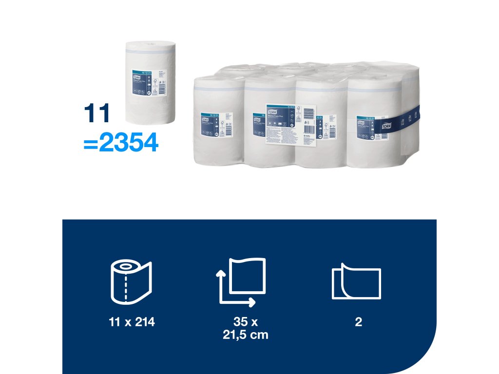Tork papierová utierka PLUS – jednovrstvové utierky, vyrobené z recyklovaného papiera, v balení po 11 kusoch s dĺžkou 75 metrov a počtom 214 útržkov. Sú ideálnym riešením pre udržateľné a ekonomické použitie v rôznych pracovných prostrediach. Cena zahŕňa kompletné balenie vhodné pre dávkovače s systémom M1.