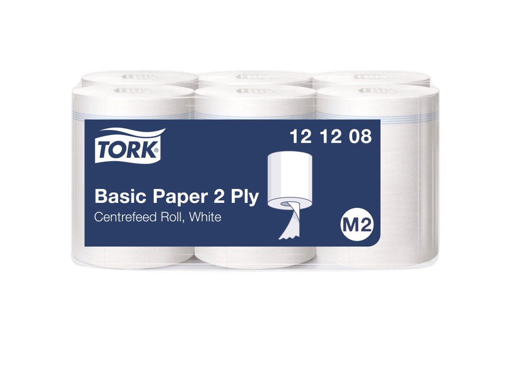 121208 - M2 - Tork Basic dvojvrstvová papierová utierka 2-vr, 135 m, 450 útržkov, recykel biela, ekologická a vysoko absorpčná utierka, ideálna pre komerčné použitie, šetrná k životnému prostrediu, cena za balenie 6 ks.