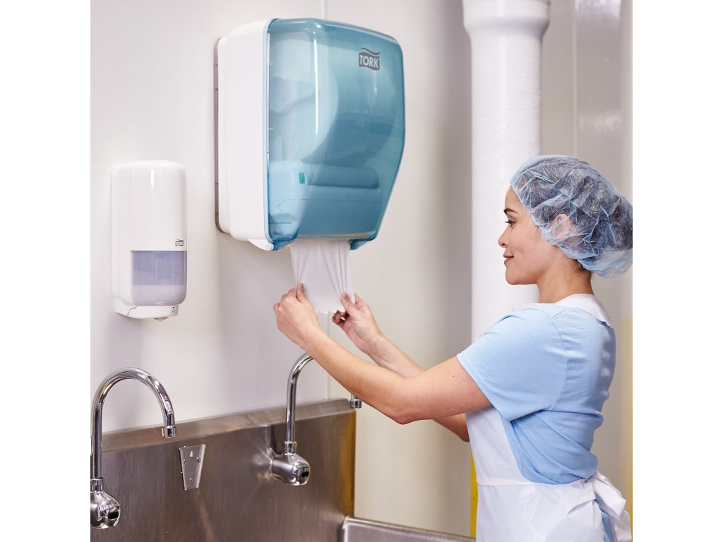 Tork papierová utierka je navrhnutá na optimálne dávkovanie z Tork utesneného zásobníka. Medzinárodná certifikácia HACCP zaisťuje, že tento produkt je bezpečný na použitie na miestach spracovania a prípravy potravín.