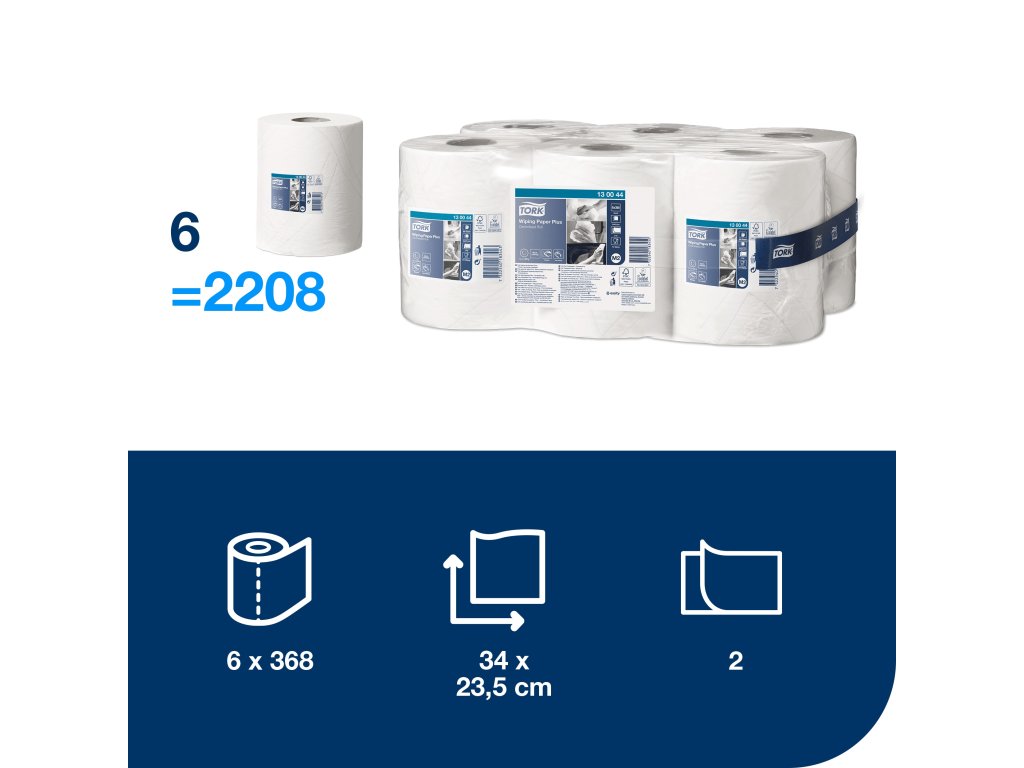 130044 - M2 - Tork papierová utierka Plus 2-vrstvová, 125 m, 368 útržkov, kvalitná a vysoko absorpčná utierka, ideálna pre komerčné a priemyselné prostredie, poskytuje spoľahlivý výkon pri čistení a utieraní, cena za balenie 6 ks.