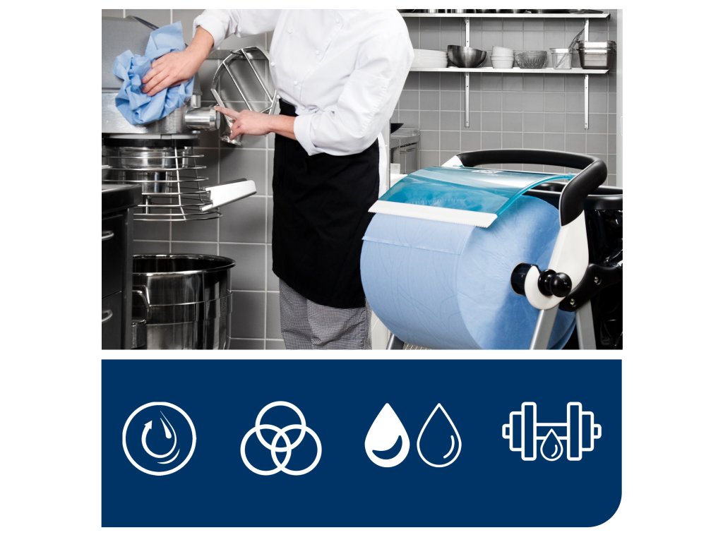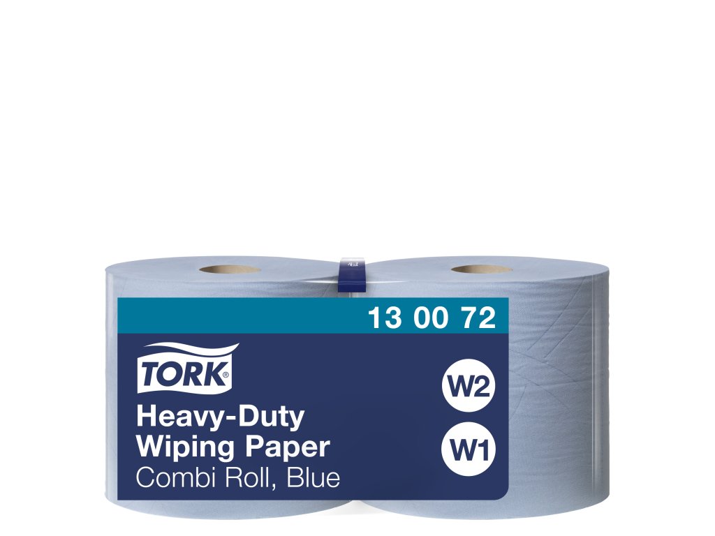 130072 - W1/W2 - Tork Heavy-Duty papierová utierka modrá 2-vrstvová, 2x170 m, 2x500 útržkov, odolná a vysoko absorpčná utierka, ideálna pre náročné čistiace úlohy v priemyselných a komerčných prostrediach, modrá farba pre ľahké rozlíšenie, cena za balenie 2 ks.