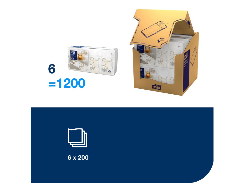Tork Premium skladané obrúsky na príbor (kód 13660) sú kvalitné béžové obrúsky, vyrobené z 3 vrstiev, s veľkosťou 40 x 40 cm. Tieto obrúsky sú ideálne na použitie v reštauráciách a hospodárskych zariadeniach, kde sa vyžaduje vyššia úroveň kvality a funkčnosti pri stolovaní. Balenie obsahuje 200 ks, čo zabezpečuje dlhodobé a efektívne využitie pri podávaní jedál. Ich kvalitný materiál je mäkký, odolný a vysoko absorpčný, čím poskytuje pohodlie aj estetický dojem na stole.