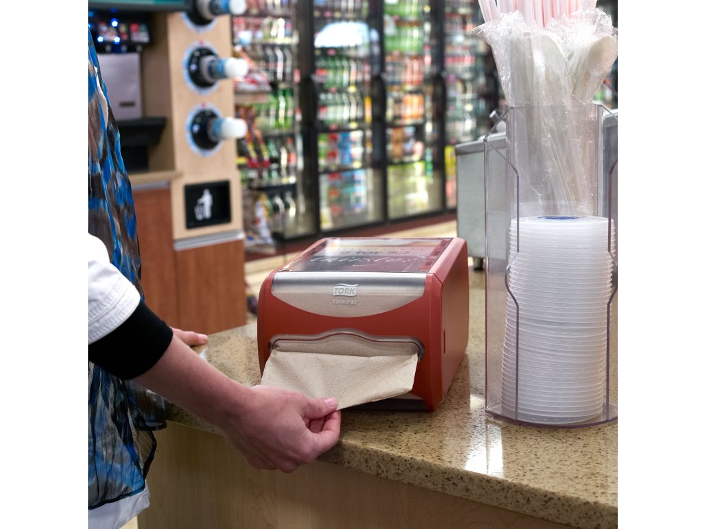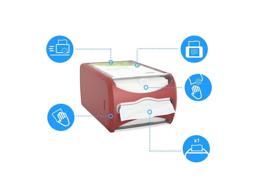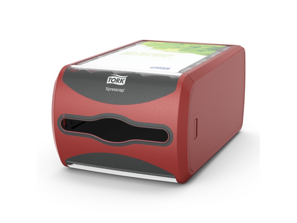 Tork Xpressnap® pultový zásobník na servítky v červenej farbe (kód: 272512) je navrhnutý na maximálnu hygienu, pričom znižuje spotrebu servítok o 25 % v porovnaní s tradičnými zásobníkmi, čím efektívne minimalizuje odpad. Tento moderný zásobník je ideálny pre reštaurácie a kaviarne, kde sa servítky podávajú priamo na stole, čo zabezpečuje jednoduché dávkovanie po jednotlivých kusoch.