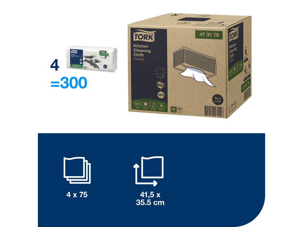 Tork kuchynská utierka na čistenie (W4) - 75 útržkov, vyrobená z 100 % biobázických materiálov, je ideálnym riešením pre efektívne čistenie a údržbu kuchyne, poskytuje vynikajúcu absorpciu a výkon pri odstraňovaní špiny a tekutín. Je vyrobená z recyklovaných materiálov a jej obal obsahuje minimálne 30 % recyklovaného plastu, čím prispieva k udržateľnosti a ekologickej zodpovednosti. Utierka má rozmery 41,5 x 35,5 cm a v balení je 75 útržkov, čo zabezpečuje praktické a hygienické použitie s dávkovaním po jednom útržku pre minimalizáciu odpadu a kontaminácie.