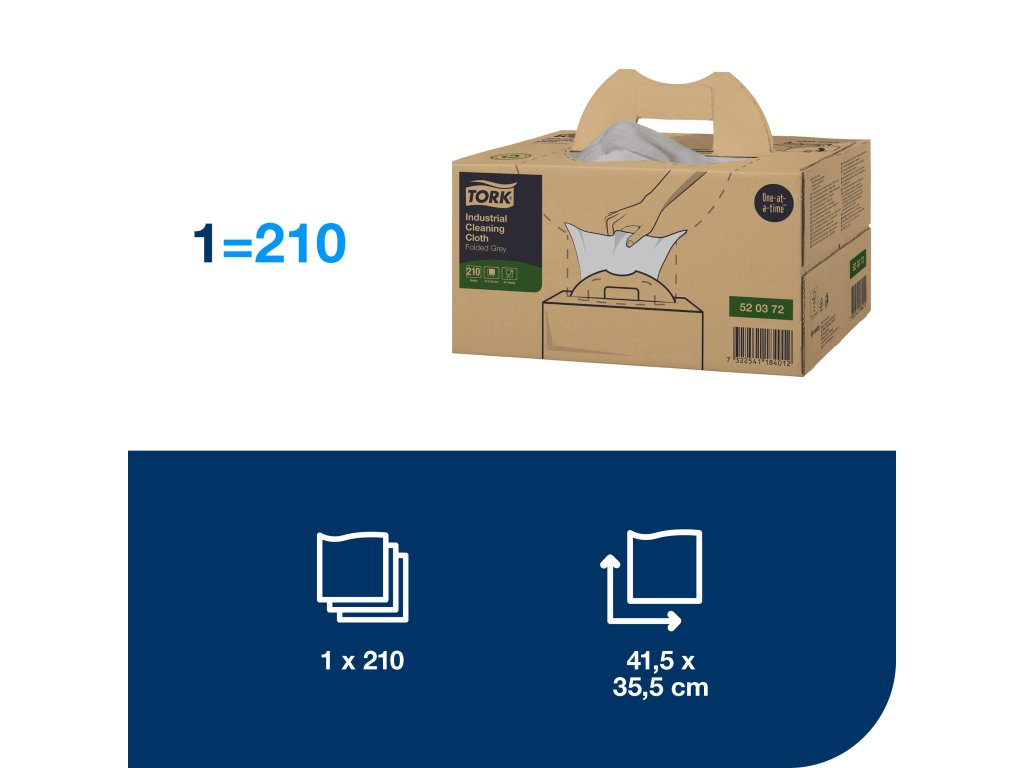 Tork čistiace utierky priemyselné W7, 210 ks, 35,5 x 41,5 cm, P100 sú jednovrstvové vysoko odolné utierky vhodné na intenzívne čistenie priemyselných povrchov. Sú vyrobené z kvalitných materiálov, ktoré zvládajú čistenie aj tých najodolnejších škvŕn, oleja či mastnoty bez toho, aby sa roztrhli. Ideálne sú na použitie s väčšinou rozpúšťadiel a poskytujú dostatočnú ochranu pre ruky pri práci s drsnými povrchmi. Táto veľkosť a formát je určený na efektívne čistenie v náročných prostrediach, ako sú dielne a priemyselné prevádzky, kde je vyžadovaná vysoká odolnosť a rýchle absorbovanie tekutín.