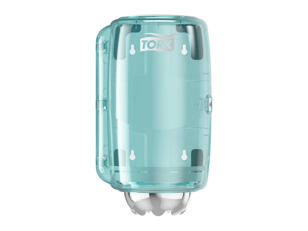 Tork Mini zásobník so stredovým odvíjaním 658000, M1 – Elegantný zásobník v bielo-tyrkysovom prevedení, navrhnutý pre efektívne dávkovanie toaletného papiera. Ideálny pre obmedzené priestory, zabezpečuje vysokú hygienu a pohodlné používanie na verejných toaletách a pracoviskách.